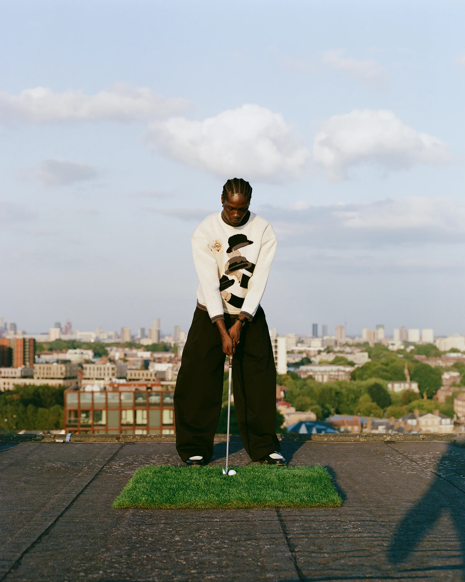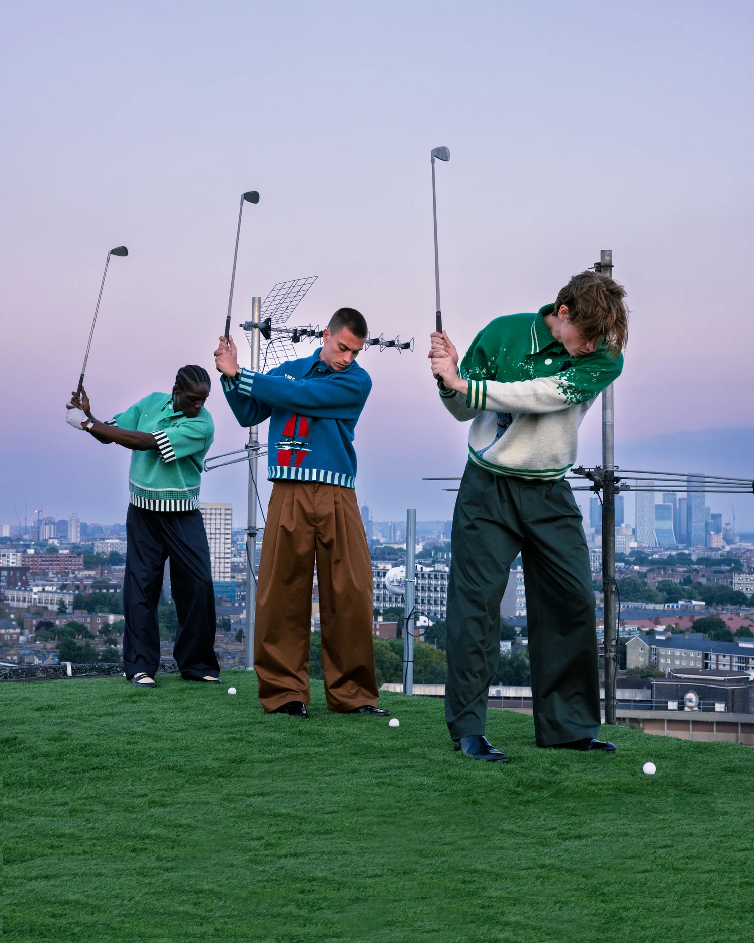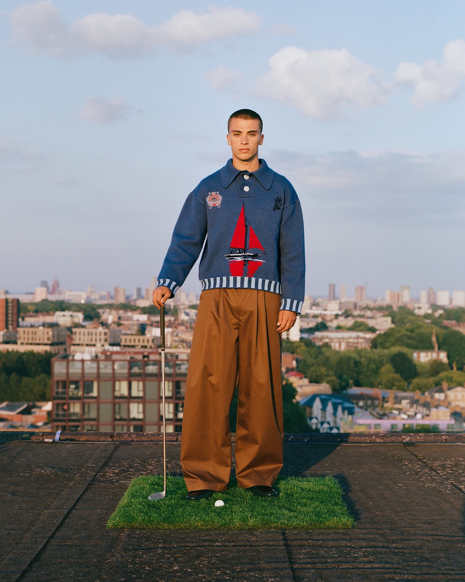 Laurier collection explores structure, leisure, and quiet confidence. Referencing classic sporting codes and collegiate detail, the collection refines familiar forms through texture, proportion, and subtle graphic language. Knits and crests feel considered rather than nostalgic, while relaxed silhouettes balance polish with ease.
