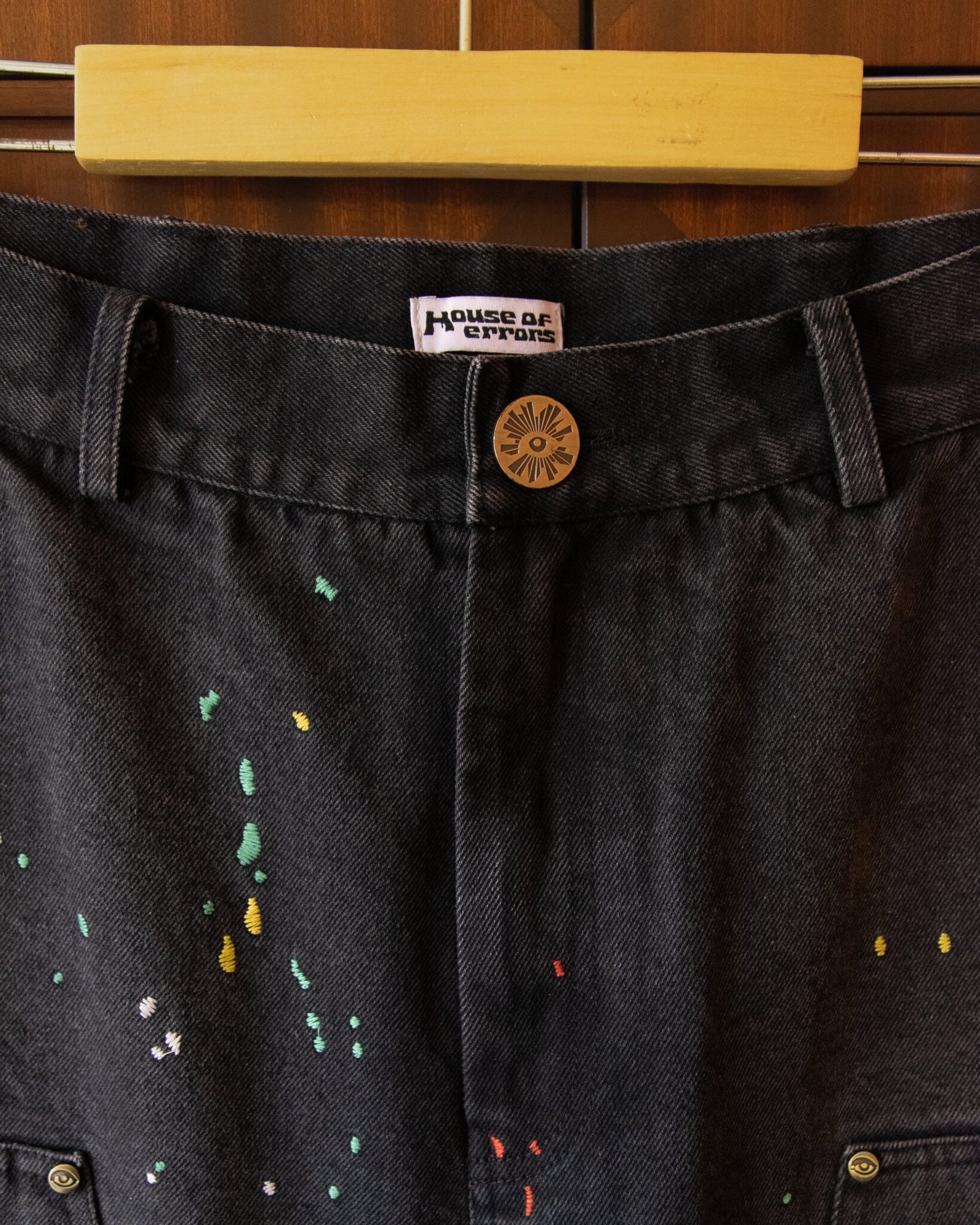 EMBROIDERED CARPENTER JEANS IN FADED BLACK