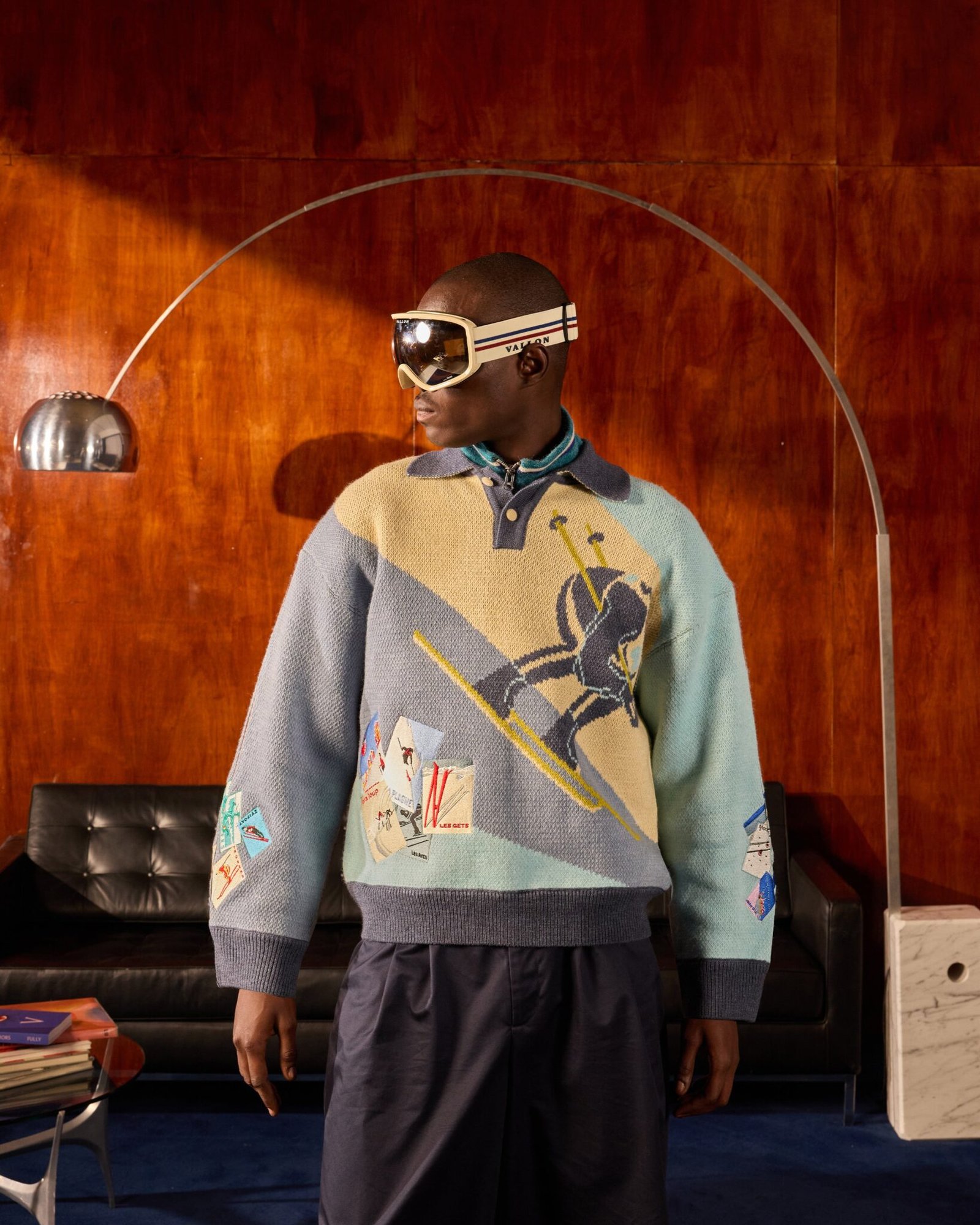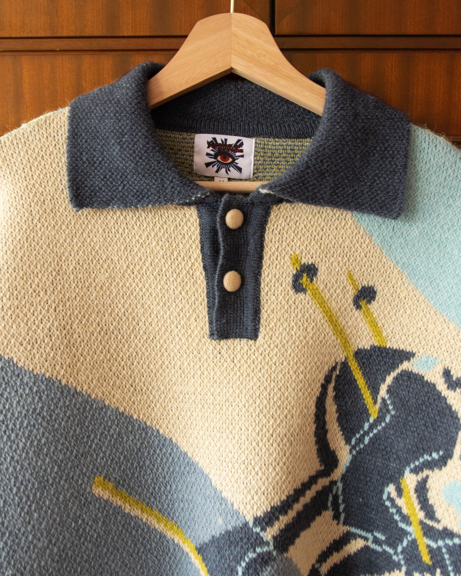Knitted Polo Sweater With Skier Motif